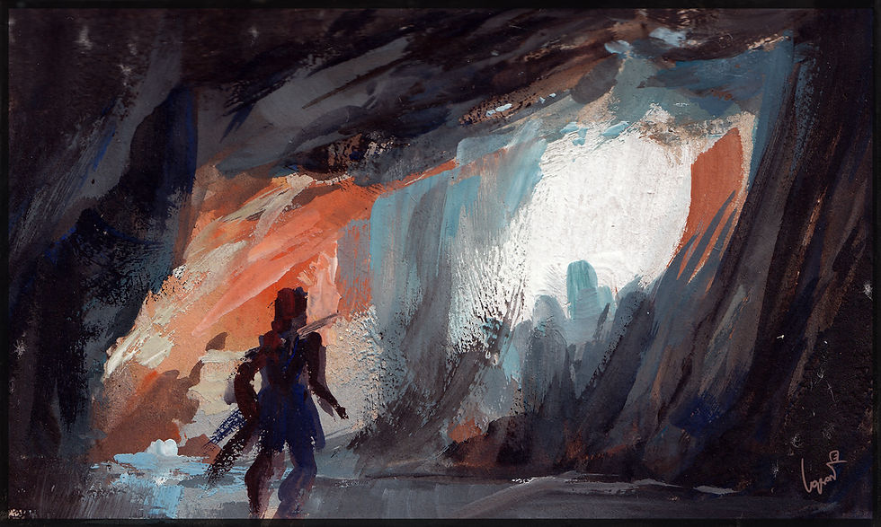 Technique is mostly watercolor & gouache on paper/illustration board but you can also see some oil paintings on canvas as well.